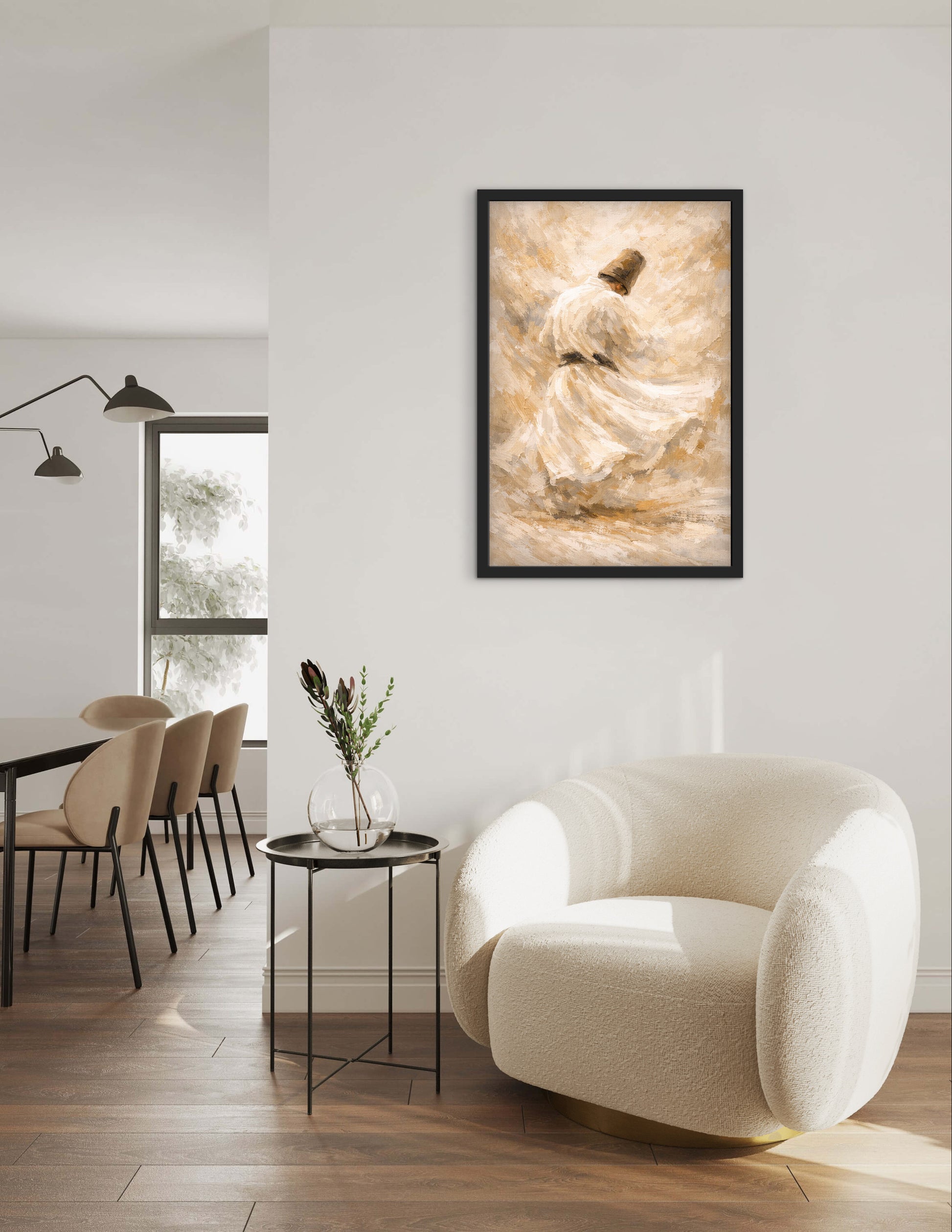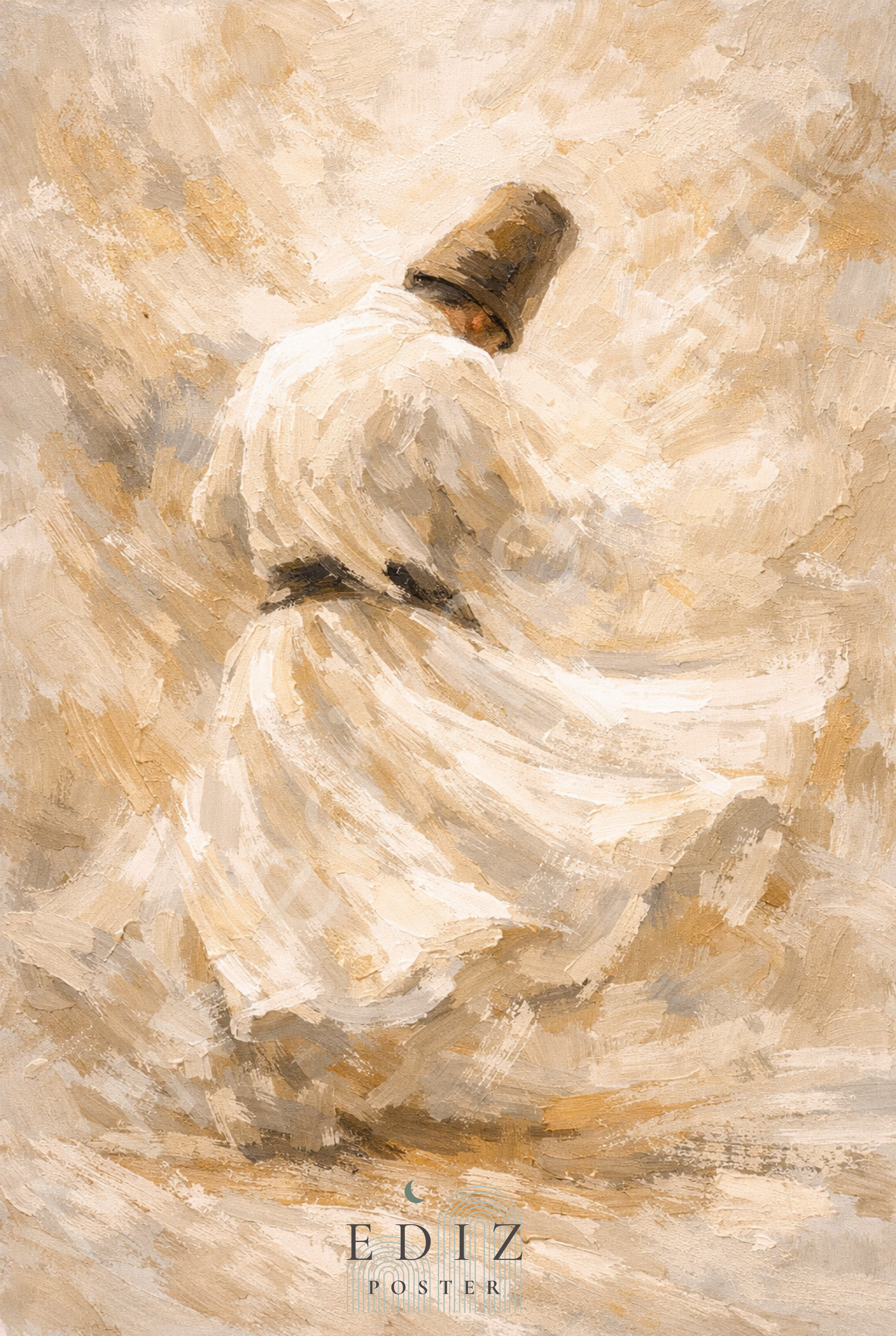 Das Kunstposter „Derwisch – Tanz der Hingabe“ fängt die Magie und Spiritualität des drehenden Derwischs in eleganten Creme- und Beigetönen ein. Die fließenden Bewegungen und die wirbelnde Silhouette vermitteln ein Gefühl von Freiheit, Einklang und innerer Ruhe. Jeder Kreis, jede Drehung spiegelt die tiefe Verbindung von Körper, Geist und Seele wider und lädt den Betrachter ein, einen Moment der Meditation und Kontemplation zu erleben.