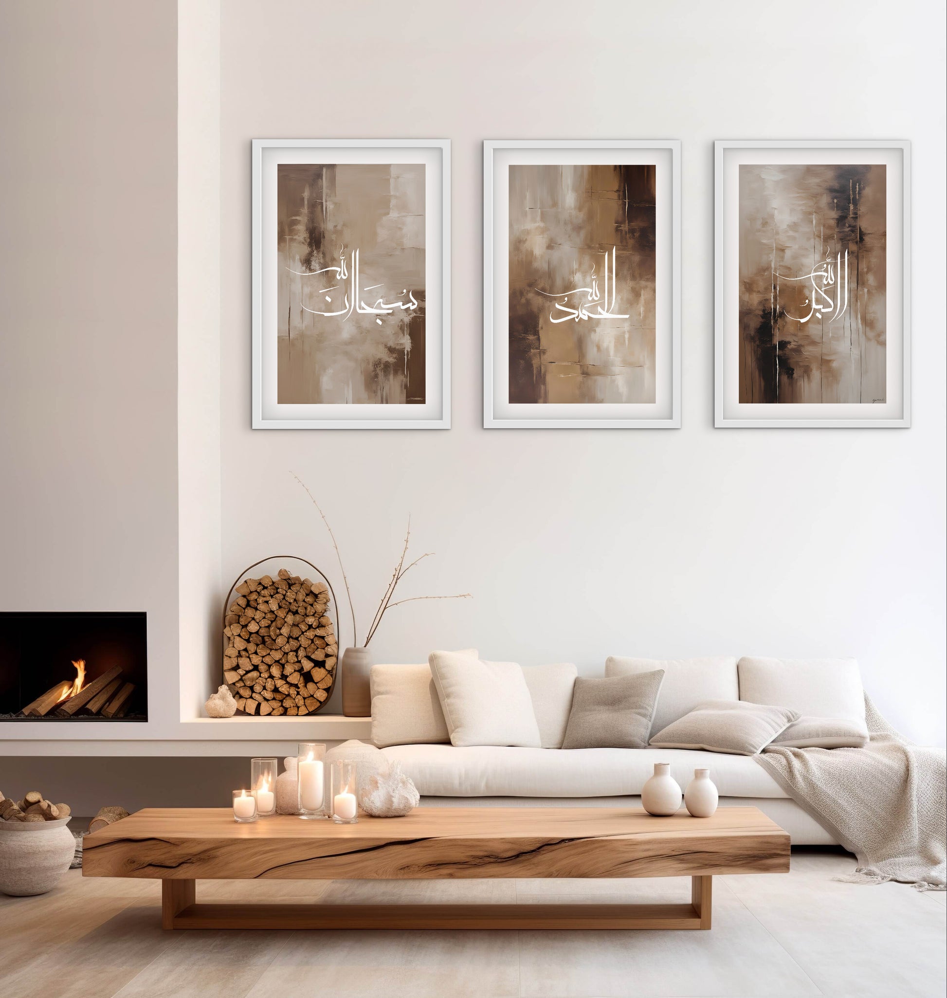 Dieses Kunstposter zeigt den Dhikr „Subhanallah“ in eleganter arabischer Kalligrafie, zentriert auf einem kunstvoll gestalteten Acrylgemälde in warmen Brauntönen. Die vielschichtig aufgetragenen Farben und feinen Strukturen verleihen dem Werk Tiefe, Wärme und eine meditative Ausstrahlung.